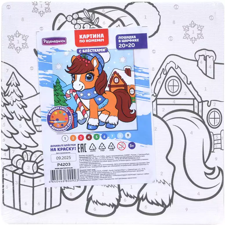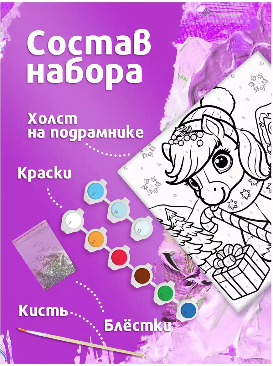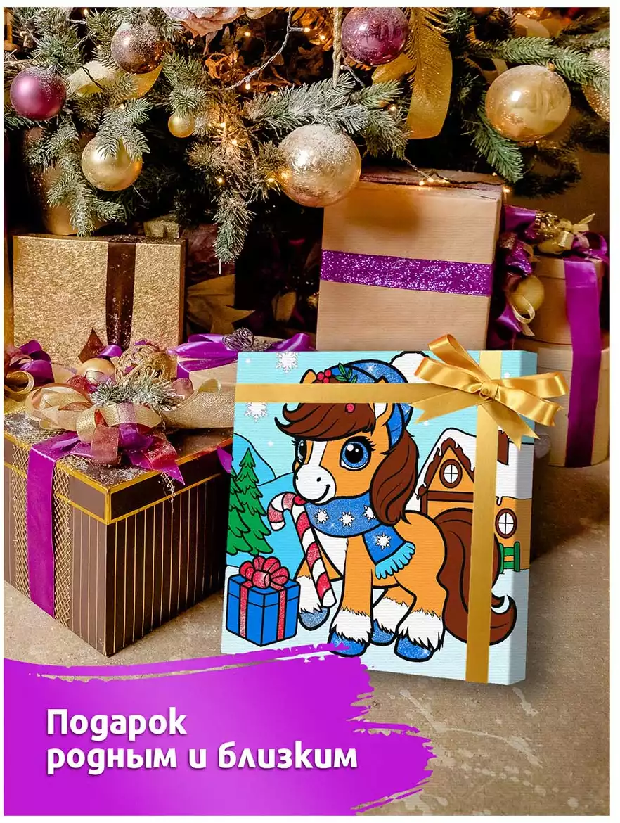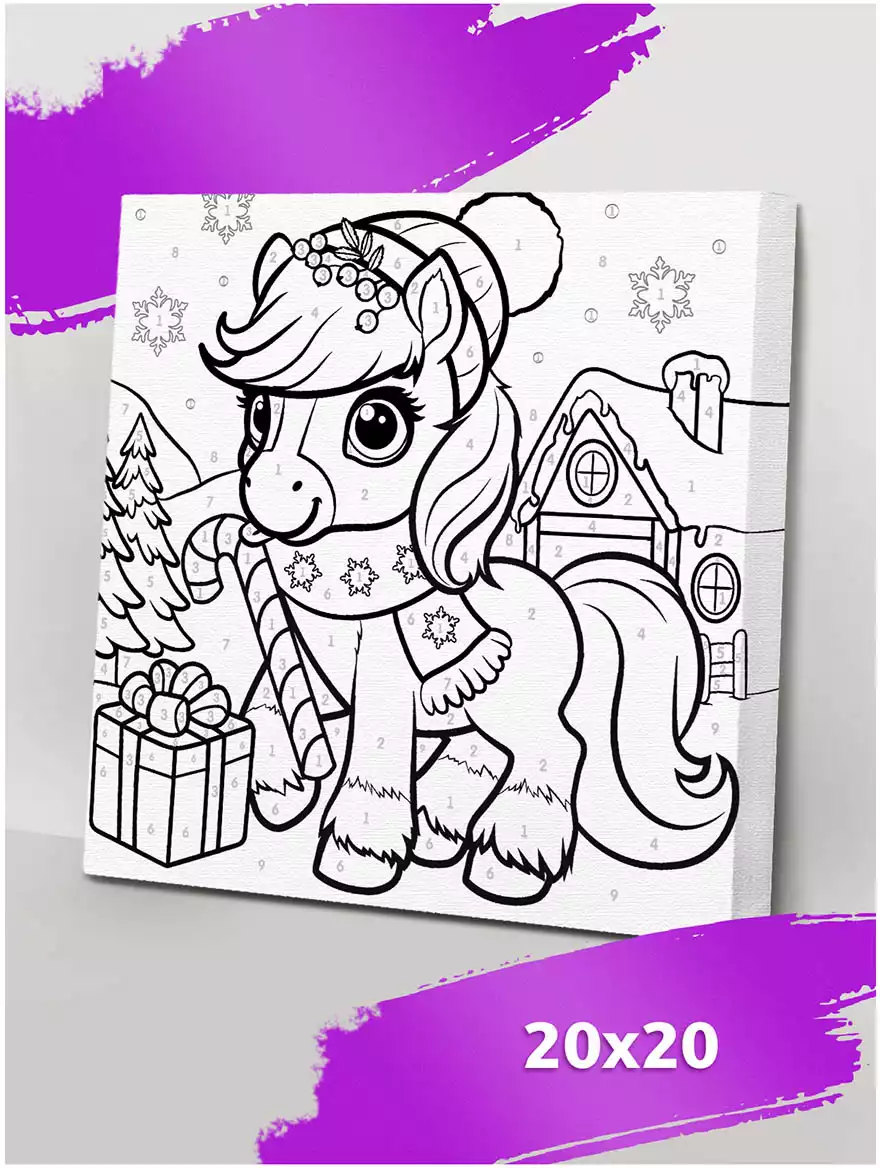 Картина по номерам 20х20см Лошадка в шарфике Р4203